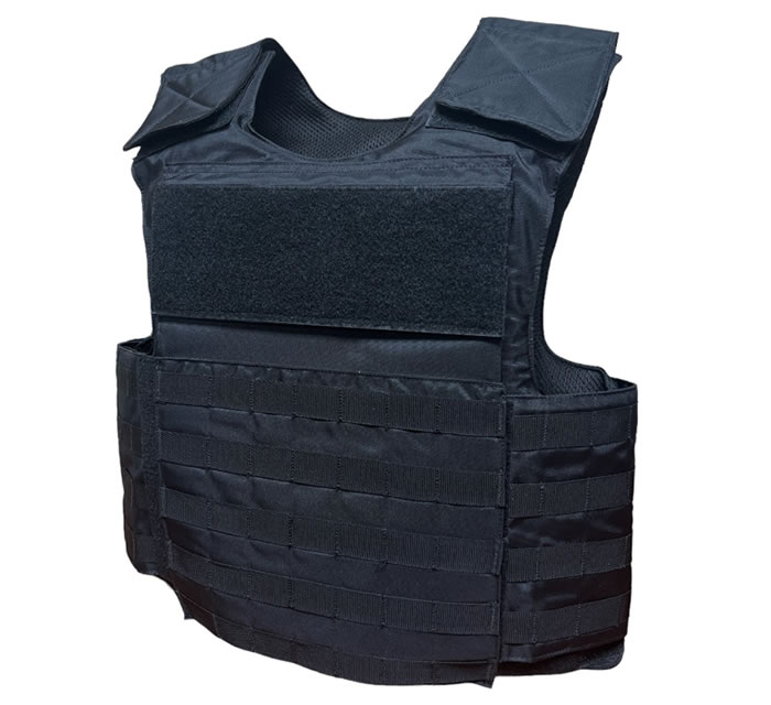 La funda táctica esta elaborada con tela de nylon de alta resistencia, bolsas para insertos balísticos en parte frontal y trasera y sistema MOLLE en parte frontal trasera y lateral. Cuenta con ajustes en hombros y laterales.