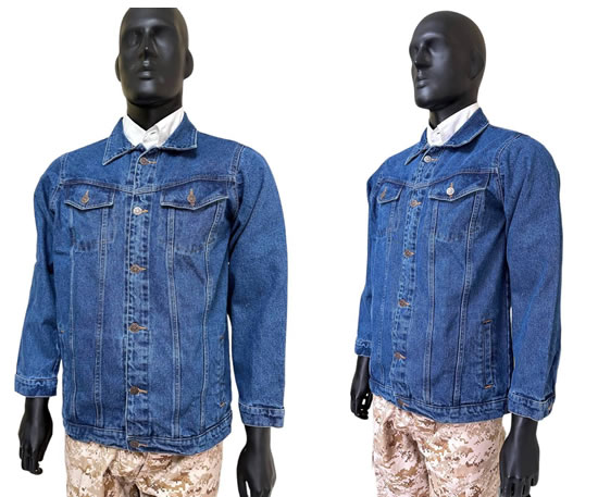 Chamarra antibala de mezclilla con paneles balísticos de polietileno de alta densidad o de aramida unidireccional encapsulados en un forro 100% impermeable sellados por equipo de ultrasonido.