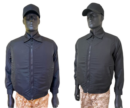 Chamarra antibala tipo polo con paneles balísticos de polietileno de alta densidad o de aramida unidireccional encapsulados en un forro 100% impermeable sellados por equipo de ultrasonido.